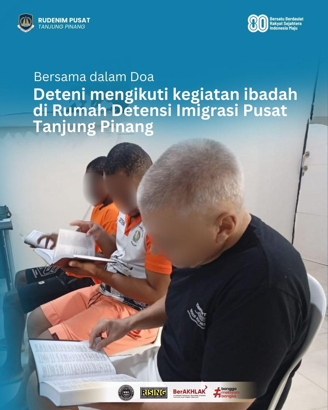 Rudenim Pusat Tanjungpinang, para deteni bersama mengikuti kegiatan ibadah sebagai wujud ketenangan jiwa dan pencarian makna di tengah proses kehidupan.